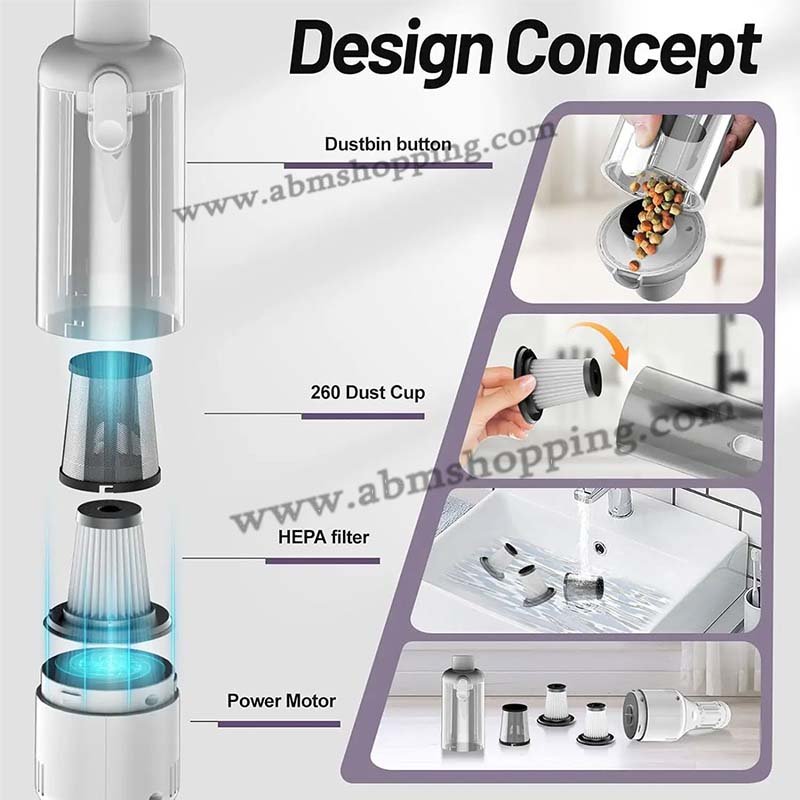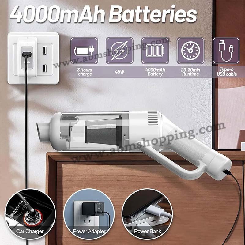 Dites adieu au cordon, chargez à tout moment, La conception portable sans fil de l’aspirateur de voiture , vous permet de vous déplacer librement tout en nettoyant votre voiture, votre maison, votre cuisine et votre bureau.