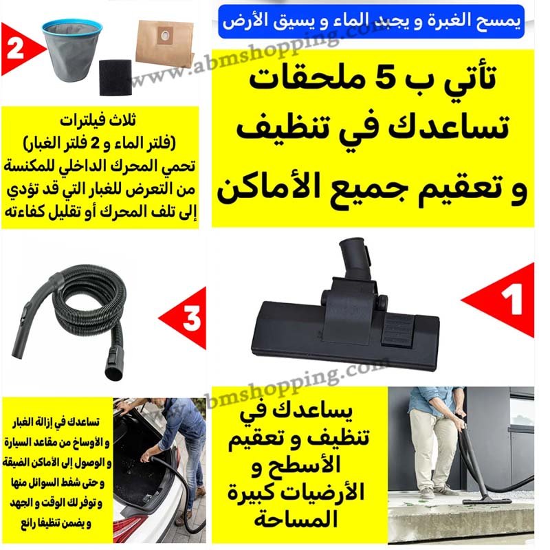 15.000د.جLe prix initial était : 15.000د.ج.14.300د.جLe prix actuel est : 14.300د.ج.Ajouter au panierPuissance : 1000 W Tension : 220-240 V, 50/60 Hz Poids Net : 5,7 kg Poids Brut : 6,7 kg Capacité : 20 L Dimensions : 35,5 x 35,5 x 46 cm Longueur du tuyau d’air : 1,5 m L’aspirateur est équipé d’une variété d’accessoires pour le nettoyage de différentes surfaces, y compris des sols, …