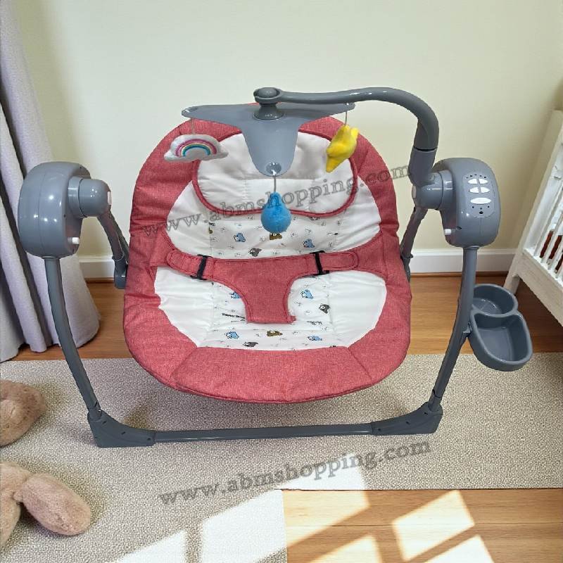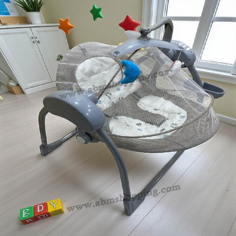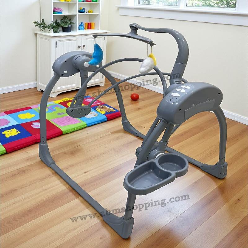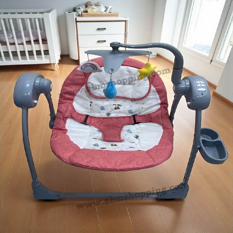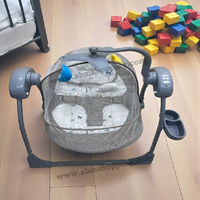 • Une balancelle électrique confortable et sûre, conçue pour offrir confort et calme aux bébés grâce à un doux mouvement de balancement, similaire à celui d’une mère.