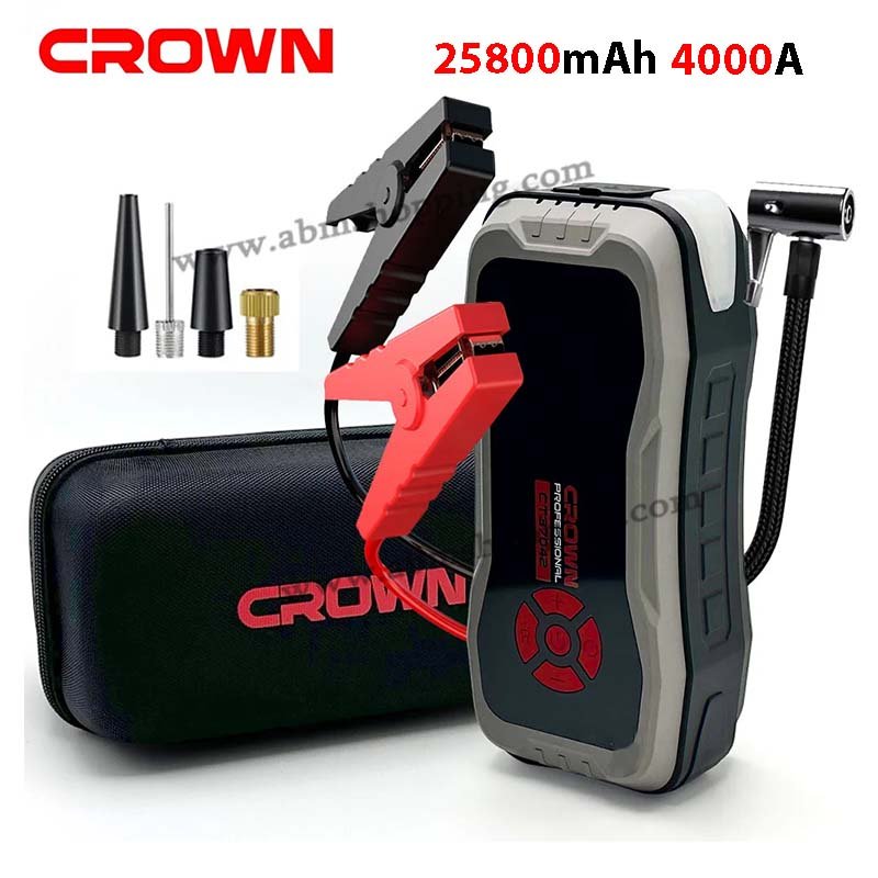 Le CROWN CT37042 est un appareil polyvalent conçu pour les automobilistes exigeants. Il combine : Booster de batterie haute capacité (pour démarrer rapidement les véhicules 12 V).Compresseur d’air intégré pour gonfler pneus, ballons, matelas, etc.Batterie externe (power bank) pour recharger smartphones, tablettes et autres appareils USB.Lampe LED multi-mode pour l’éclairage d’urgence.