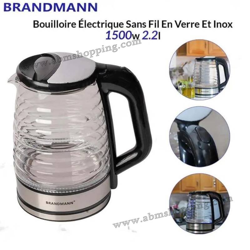 Bouilloire Électrique Sans Fil En Verre Et Inox 2.2l 1500w | Brandmann