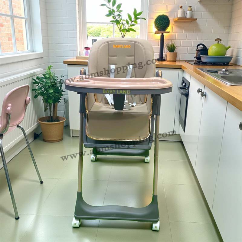 Chaise haute a manger pour enfants Baby Land, confortable et sécurisée avec harnais, plateau amovible et structure stable. Idéale pour les repas et les moments de jeu, facile à nettoyer et adaptée aux bébés dès 6 mois a 36 mois.