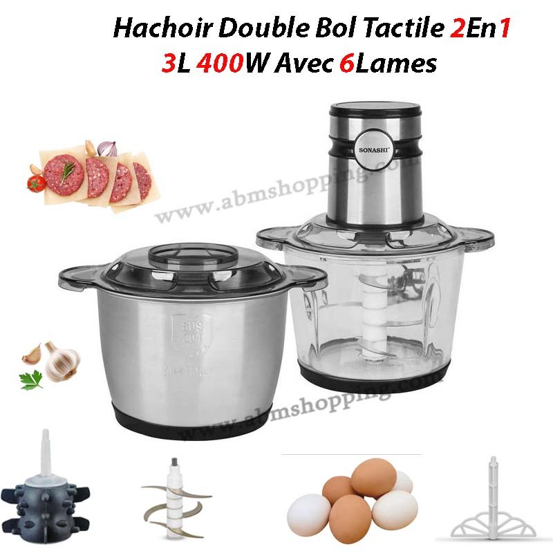 Hachoir Électrique Tactile Double Bol 2En1 3L 400W Avec 6Lames | SONASHI SMC-25