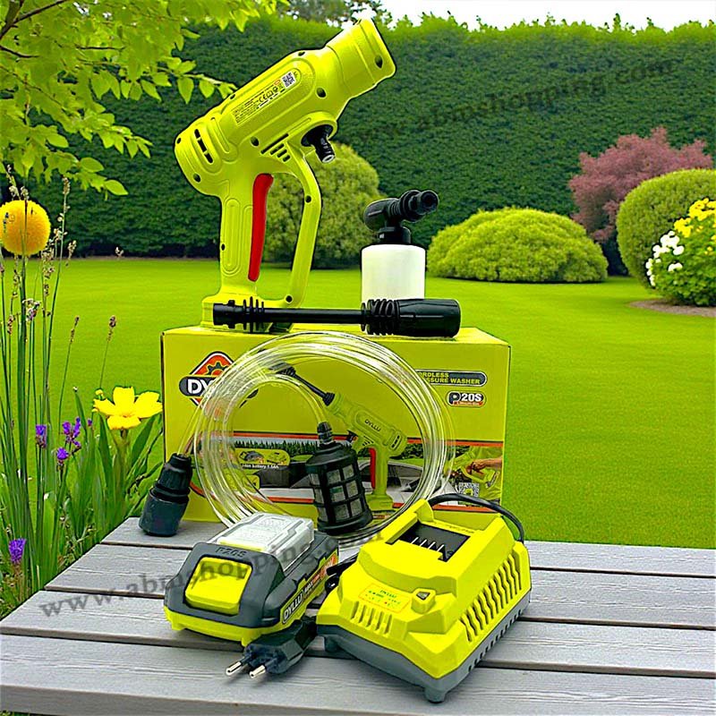 Profitez d’un nettoyage puissant et sans contrainte avec le nettoyeur haute pression sans fil DYLLU. Compact et léger, il combine praticité et performance, idéal pour terrasses, voitures, mobiliers extérieurs et plus encore.