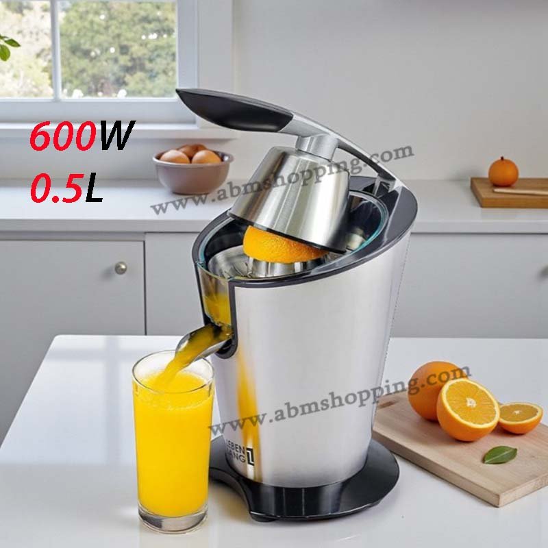 Un presse-agrumes électrique compact et pratique conçu pour extraire facilement le jus de citrons, oranges et autres agrumes. Il possède d’un moteur d’environ 600 W, un design en acier inoxydable solide, un récipient de 0,5 L et plusieurs cônes adaptables pour différents fruits. Sa conception inclut un bec verseur anti-goutte et un bras levier ergonomique pour un pressage simple et propre.