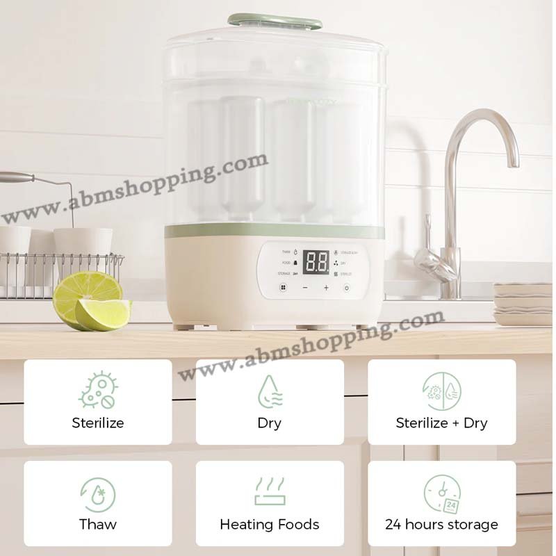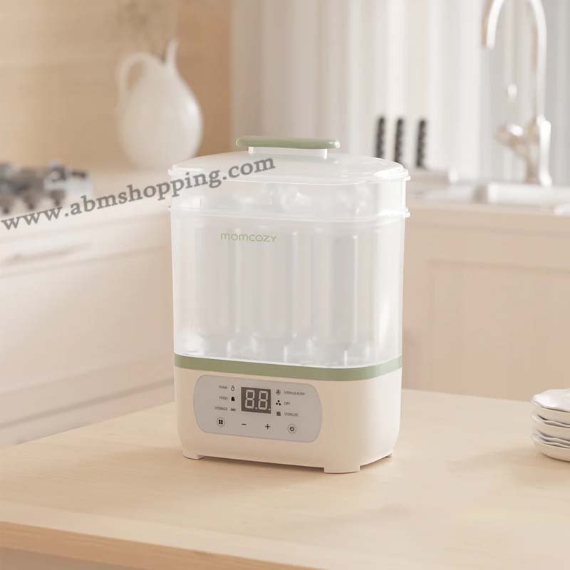 Le stérilisateur et séchoir Momcozy 8-en-1 est un appareil multifonction conçu pour assurer une hygiène parfaite des biberons et accessoires bébé. Grâce à la stérilisation à vapeur haute température et au séchage à air chaud, il élimine efficacement les bactéries tout en gardant les biberons prêts à l’emploi à tout moment.