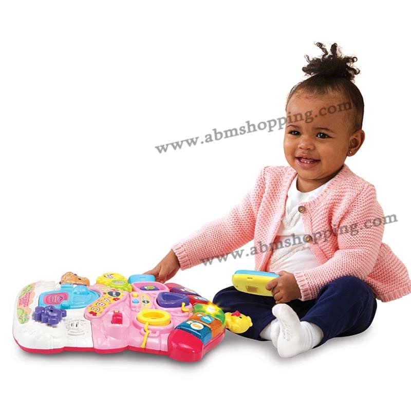 Il découvre les formes, les couleurs, les chiffres ou encore les animaux grâce au téléphone amovible, aux touches de piano lumineuses et aux formes à trier.