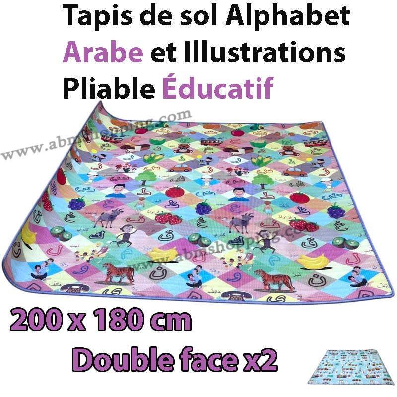 Tapis de sol Alphabet Arabe et Illustrations Pliable Éducatif pour Bébé et Enfant Double Face 200 x 180 cm