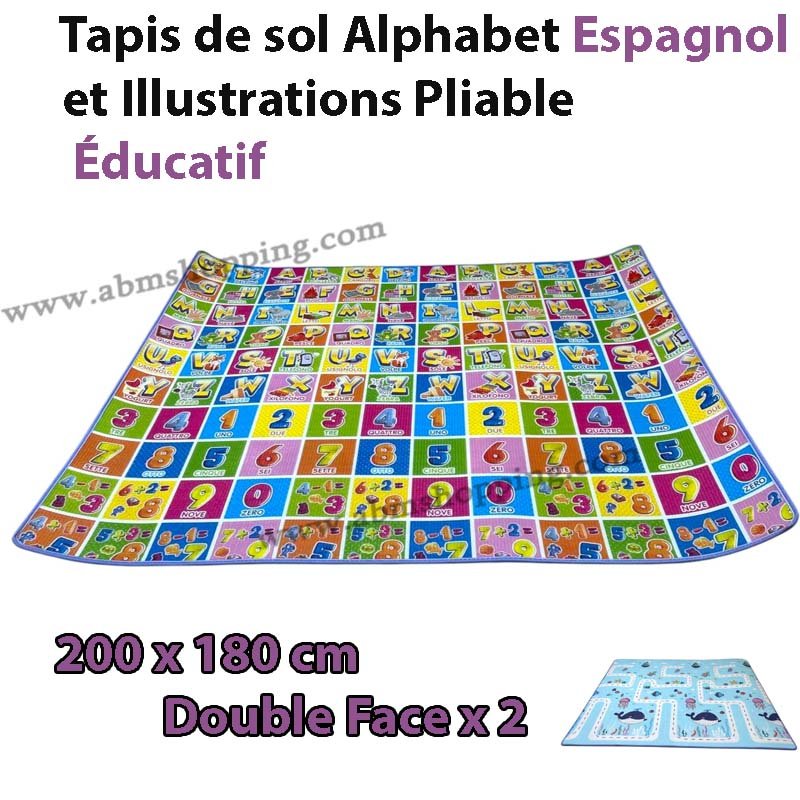 Créez un espace de jeu amusant et éducatif avec ce tapis de sol pliable double face. Conçu avec un côté alphabet espagnol illustré et un second design ludique, il aide l’enfant à découvrir les lettres, chiffres et images tout en jouant dans un confort optimal.