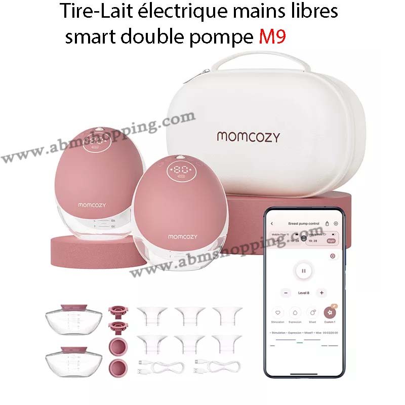Le Momcozy M9 Smart est un tire-lait nouvelle génération avec contrôle via application, puissance élevée et design mains libres. Idéal pour les mamans modernes qui veulent efficacité et liberté.