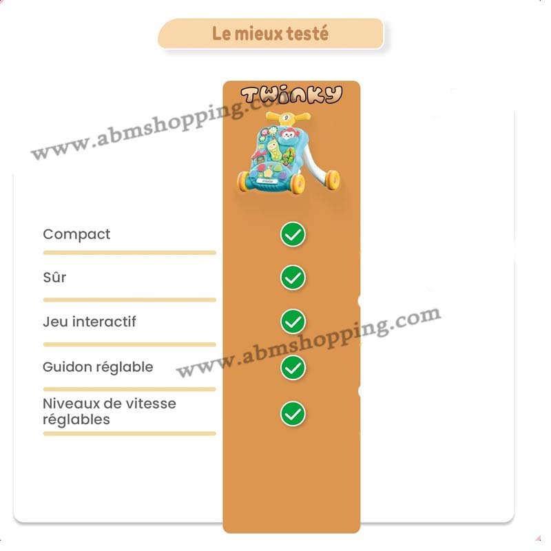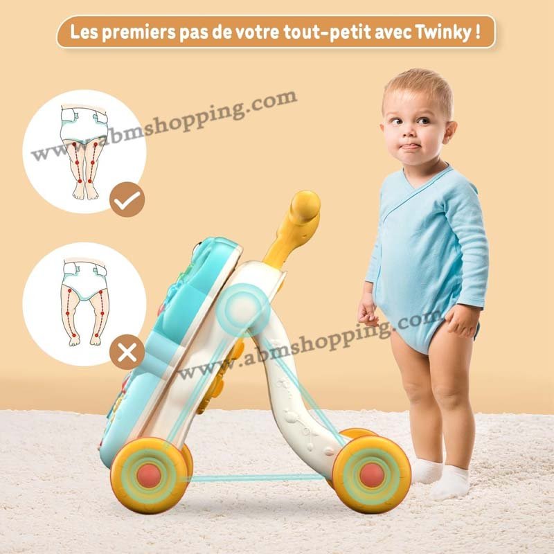 - Twinky Trotteur pour bébé , Trotteur avec vitesse réglable, plateau de jeu amovible et activités passionnantes .