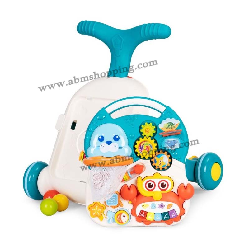 Trotteur marcheur pousseur 3En 1 évolutif avec table d’activité, permet de stimuler les sens grâce aux hochets. Développement de la motricité fine en utilisant les petits muscles des doigts pour faire des mouvements précis. Développement de la mobilité globale avec la fonction trotteur / marcheur.